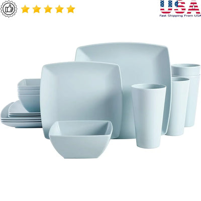 16pc Melamine Dinnerware Set Service 4 Includes Plates Bowls Tumblers Indoor Outdoor Dining Camping RVs Durable Chip Resistant