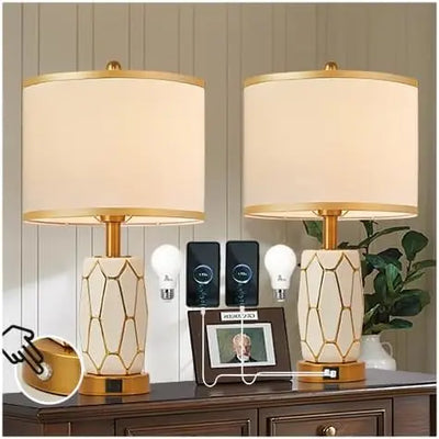 2 25-Inch Carved Geometric Ceramic Table Lamp