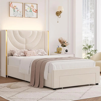 Twin Upholstered LED Bed Frame with Storage Drawer