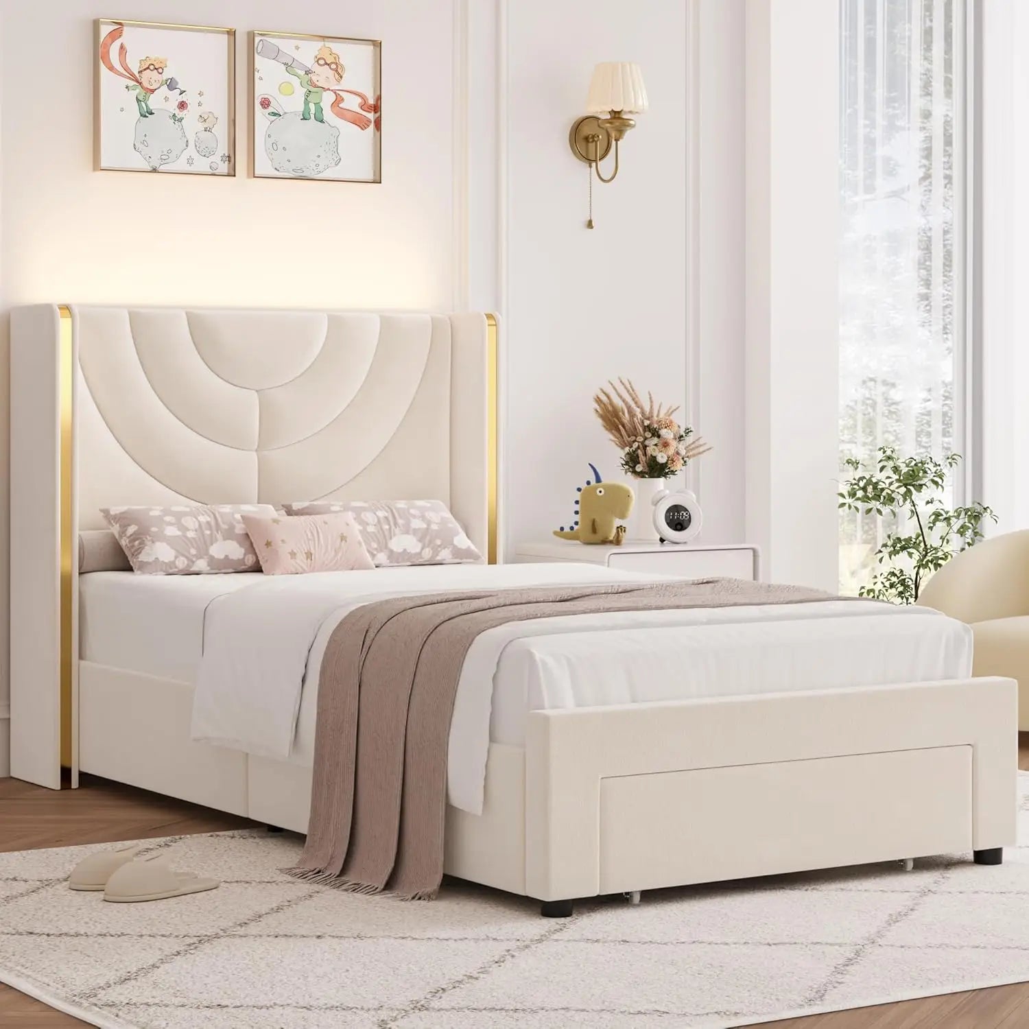Velvet Kids Bed with Wingback Headboard,