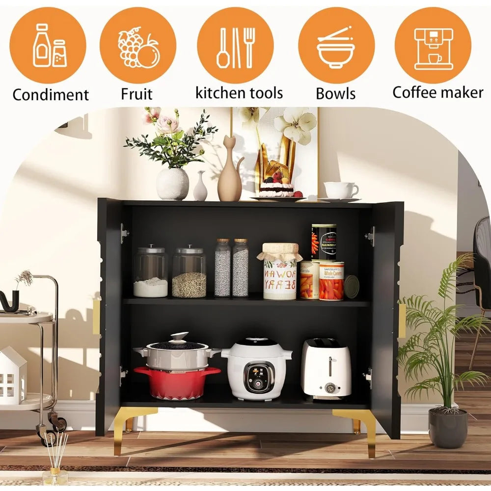 Black and Gold 2 Doors Modern Buffet Cabinets
