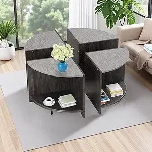 36" Circle Coffee Table with Storage Can Be Divided into 4 Tea Table Wood Accent Round Center