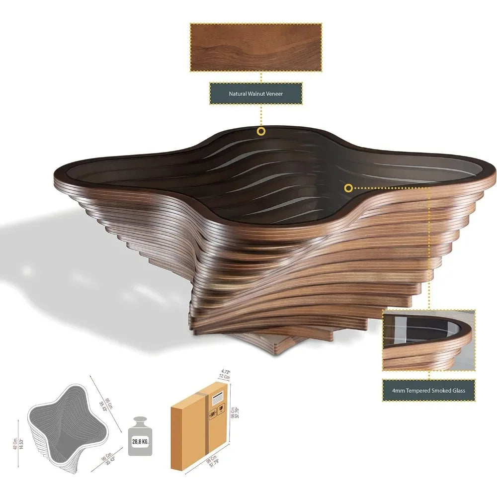 Product Care Instructions: Clean glass top with a soft, damp cloth; wipe wood finish with a soft,