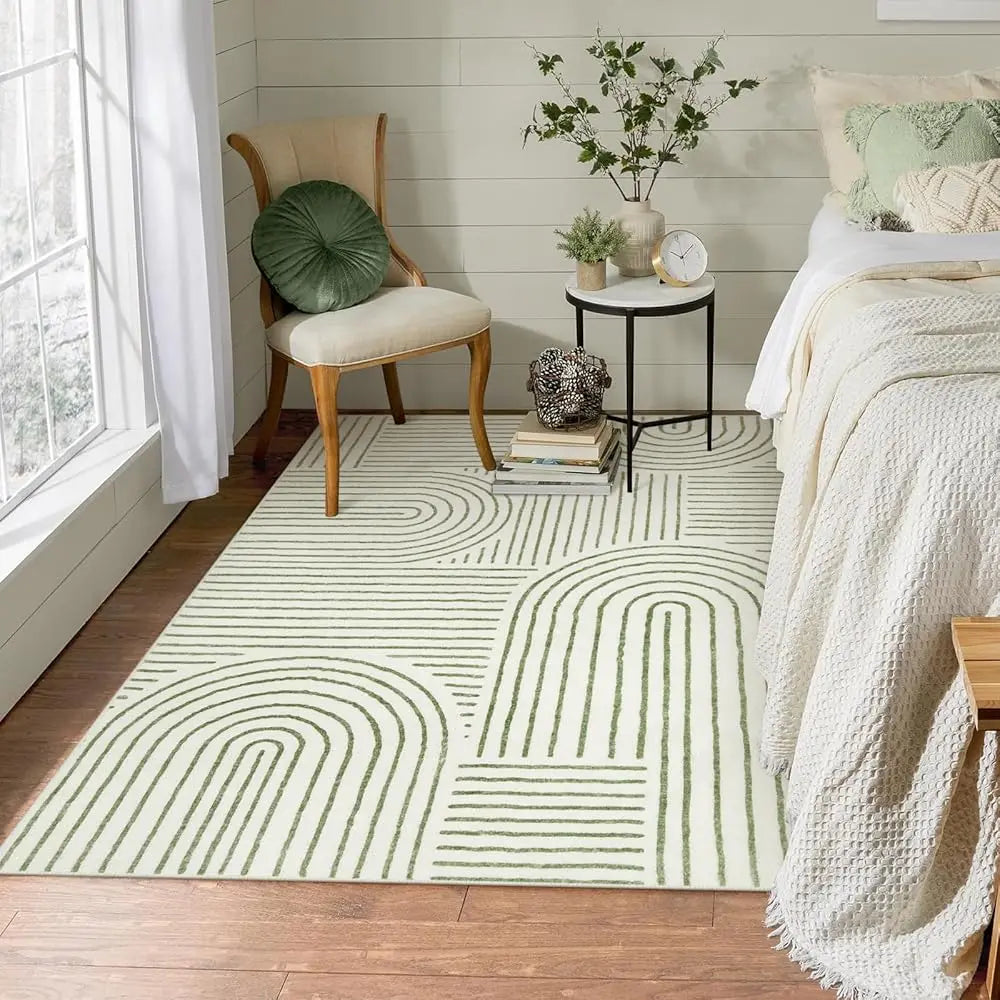 Rainbow 4X6 Area Rugs For Bedroom, Soft Washable Rugs For Entryway Ultra-Thin Modern Green Rug