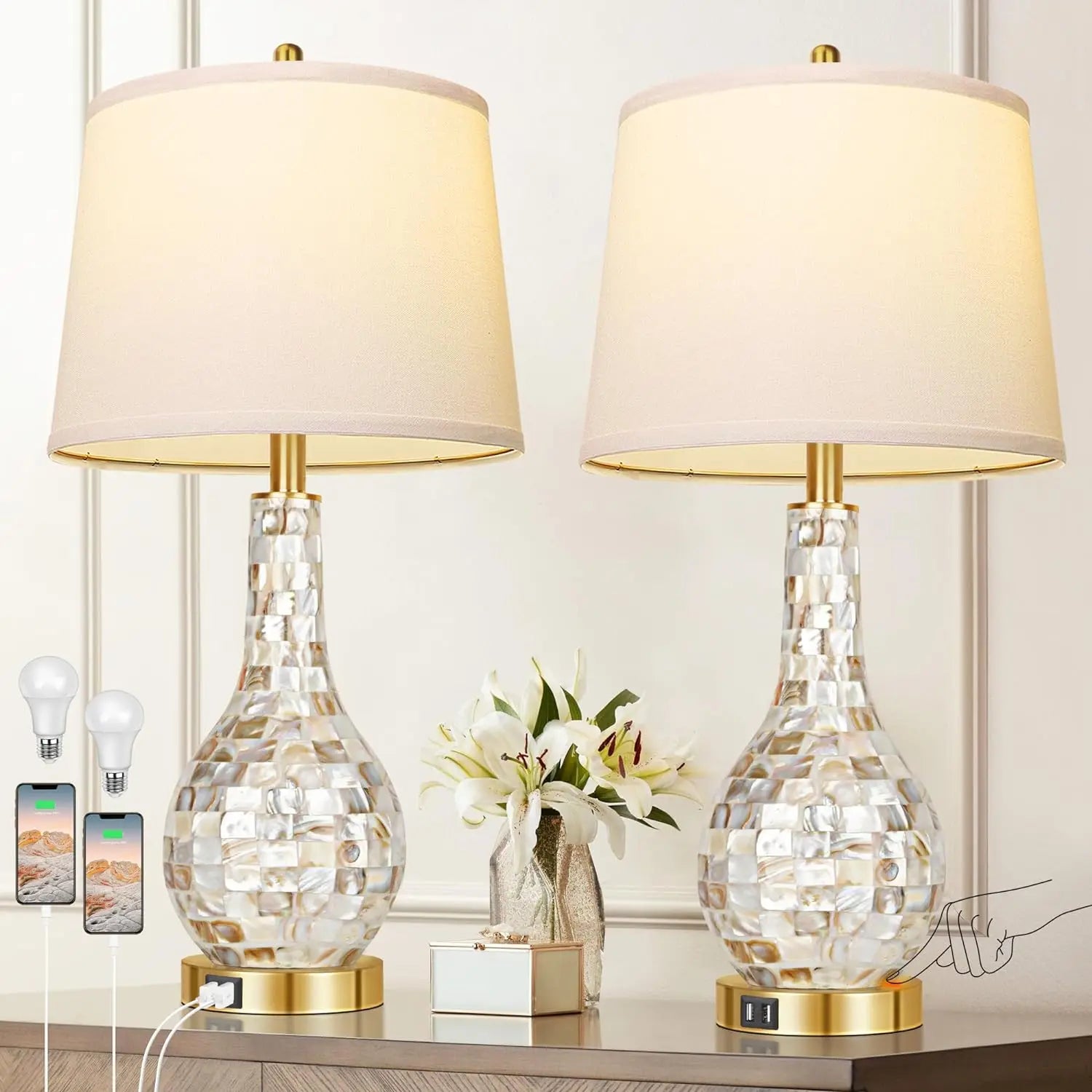 Set Of 2 Gold Shell Pearl Tile Table Lamp